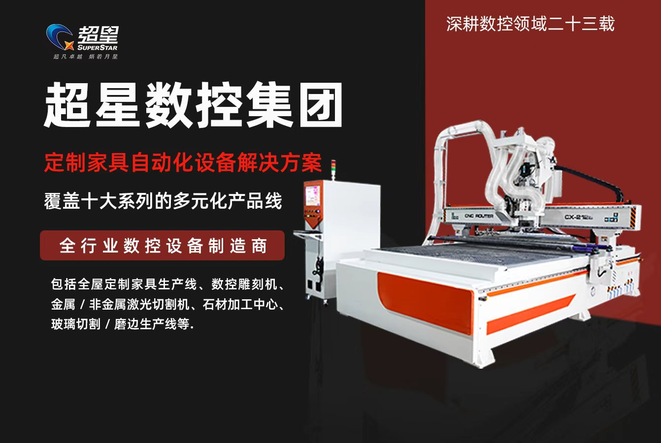 作為國內(nèi)老牌的數(shù)控設(shè)備源頭工廠,超星數(shù)控始終以“全品類覆蓋、全場景適配”為核心,打造出覆蓋木工、石材、金屬、廣告、非金屬加工等多領(lǐng)域的完整設(shè)備矩陣。在木工加工領(lǐng)域,我們提供開料機、封邊機、側(cè)孔機一站式生產(chǎn)線,讓家具制造從板材到成品實現(xiàn)高效無縫銜接;在石材與金屬加工賽道,紅外線切割機、光纖激光切割機、金屬雕刻機精準攻克硬材料加工難題,切割精度達毫米級,雕刻細節(jié)纖毫畢現(xiàn);針對廣告、紡織等非金屬領(lǐng)域,振動刀裁切機、非金屬激光切割機以靈活切割、無損加工的優(yōu)勢,成為創(chuàng)意落地的“得力助手”。每一臺設(shè)備從研發(fā)設(shè)計到生產(chǎn)組裝,均經(jīng)過嚴格質(zhì)檢流程,確保出廠即達標、開機即高效。